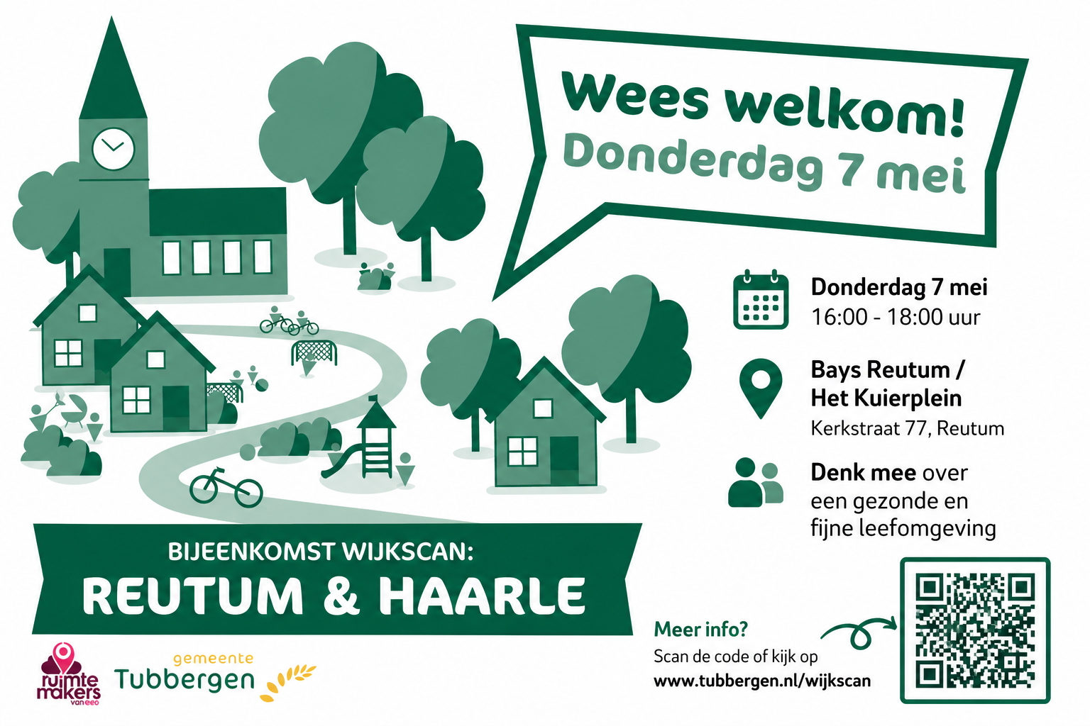 Op donderdag 7 mei organiseert de gemeente Tubbergen een inloopbijeenkomst voor de wijkscan van Reutum en Haarle. Inwoners zijn van harte welkom om mee te denken over de toekomst van hun leefomgeving.